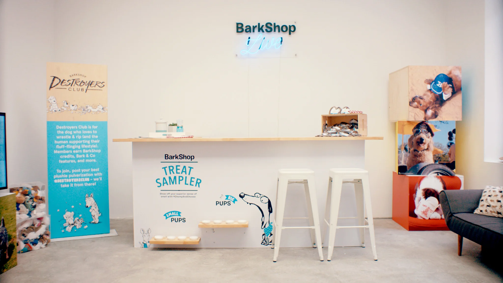 On June 6, 2016, Bark & Co launched a week-long pop-up shop called BarkShop Live, a new retail experience that lets dogs do the shopping. When a dogs played in the specially-designed space, a vest talked with sensors in all the toys and our mobile app, allowing their humans to see what their dog liked, disliked, and LOVED. Our app shared a recap, so humans could tap to buy and get their dog’s picks shipped straight to them.