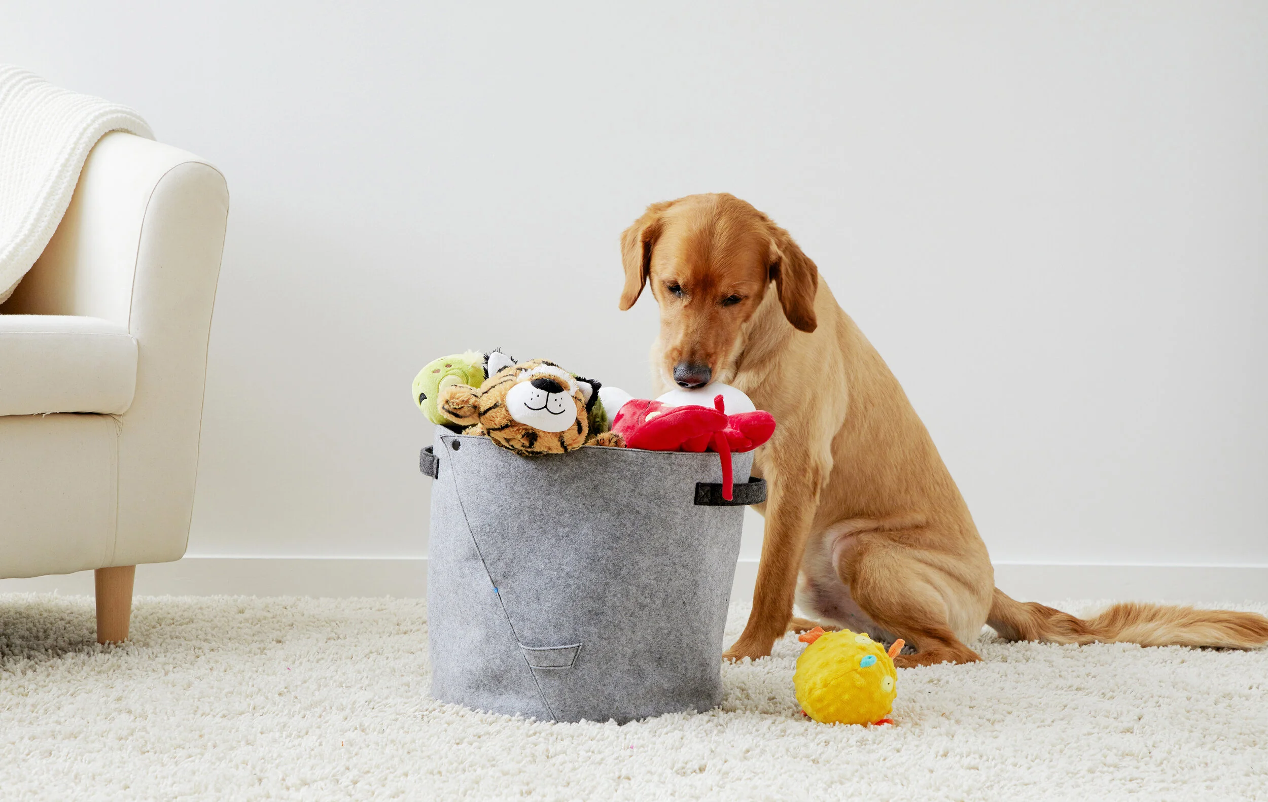 This minimalist felt toy bin is a great addition to any living room. The front flap folds down for easy access to your pup’s toy stash. No more choking while trying to get that forgotten toy deep in the basket. It is made of double-layered recycled felt so that it is soft yet holds the shape.