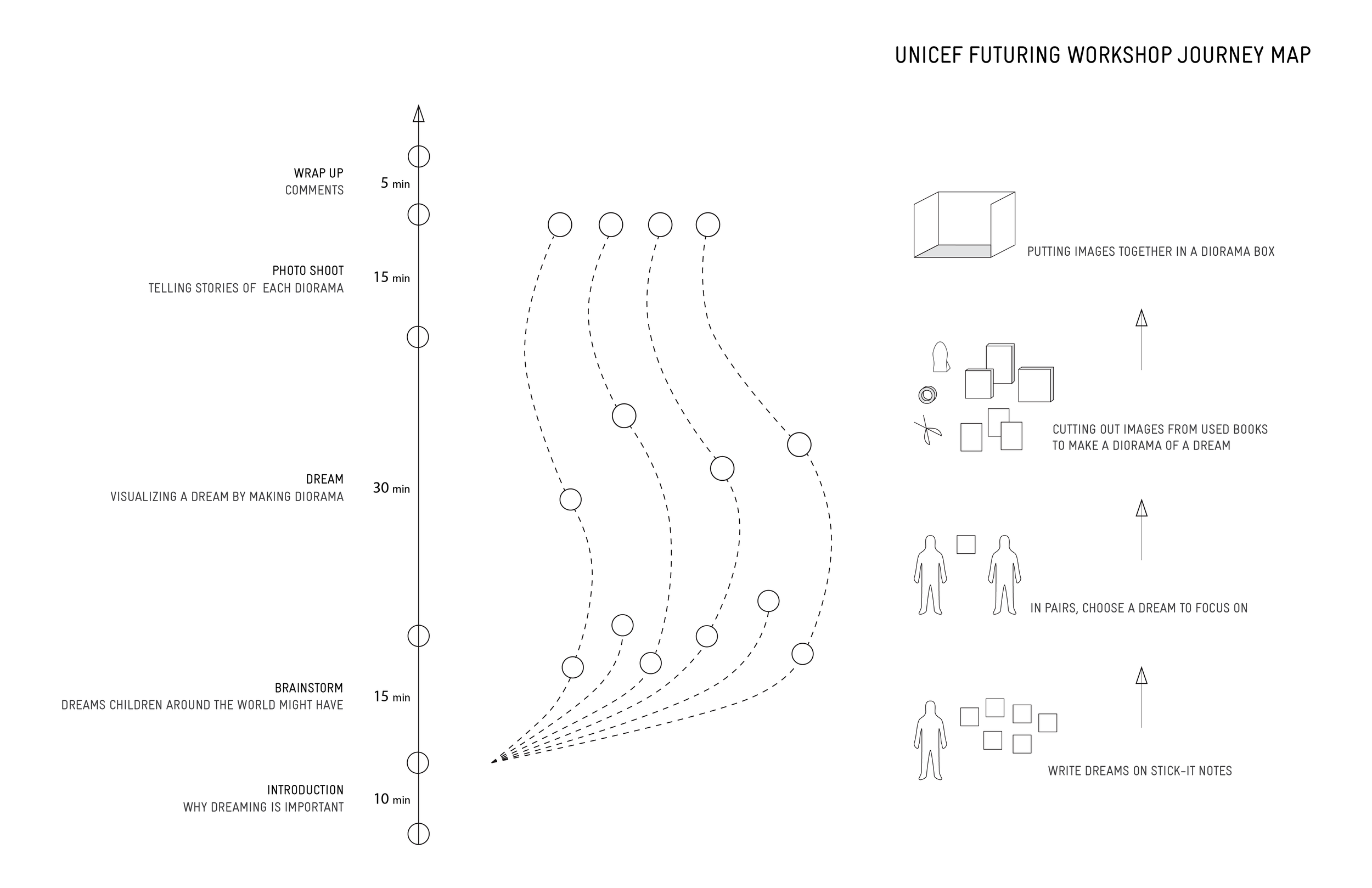 We proposed the idea of developing a series of fictional dream sequences that children around the world might relate to through the lens of international children's experiences. The dream sequences were visualized and communicated as paper-craft dioramas that depict the elements of the dream (or metaphors for the ideas) as a way to archive the thoughts that surfaced during the workshop. These dreams were not meant as prescriptive agendas for their work, but rather as ideation for instances that could serve as inspirational reference points going forward.
