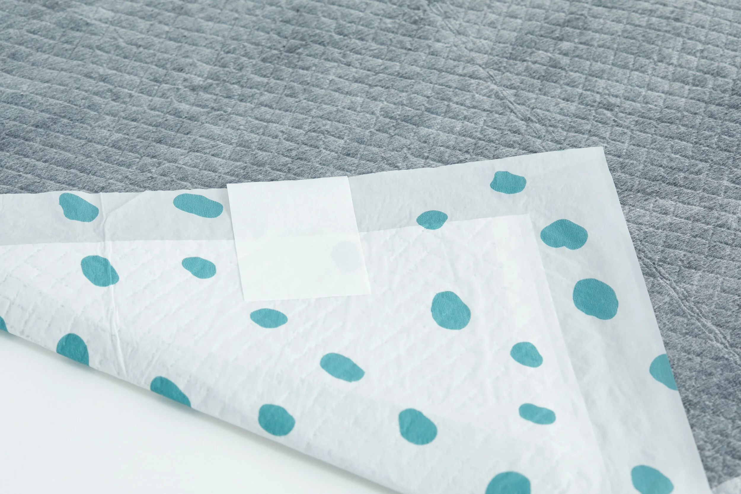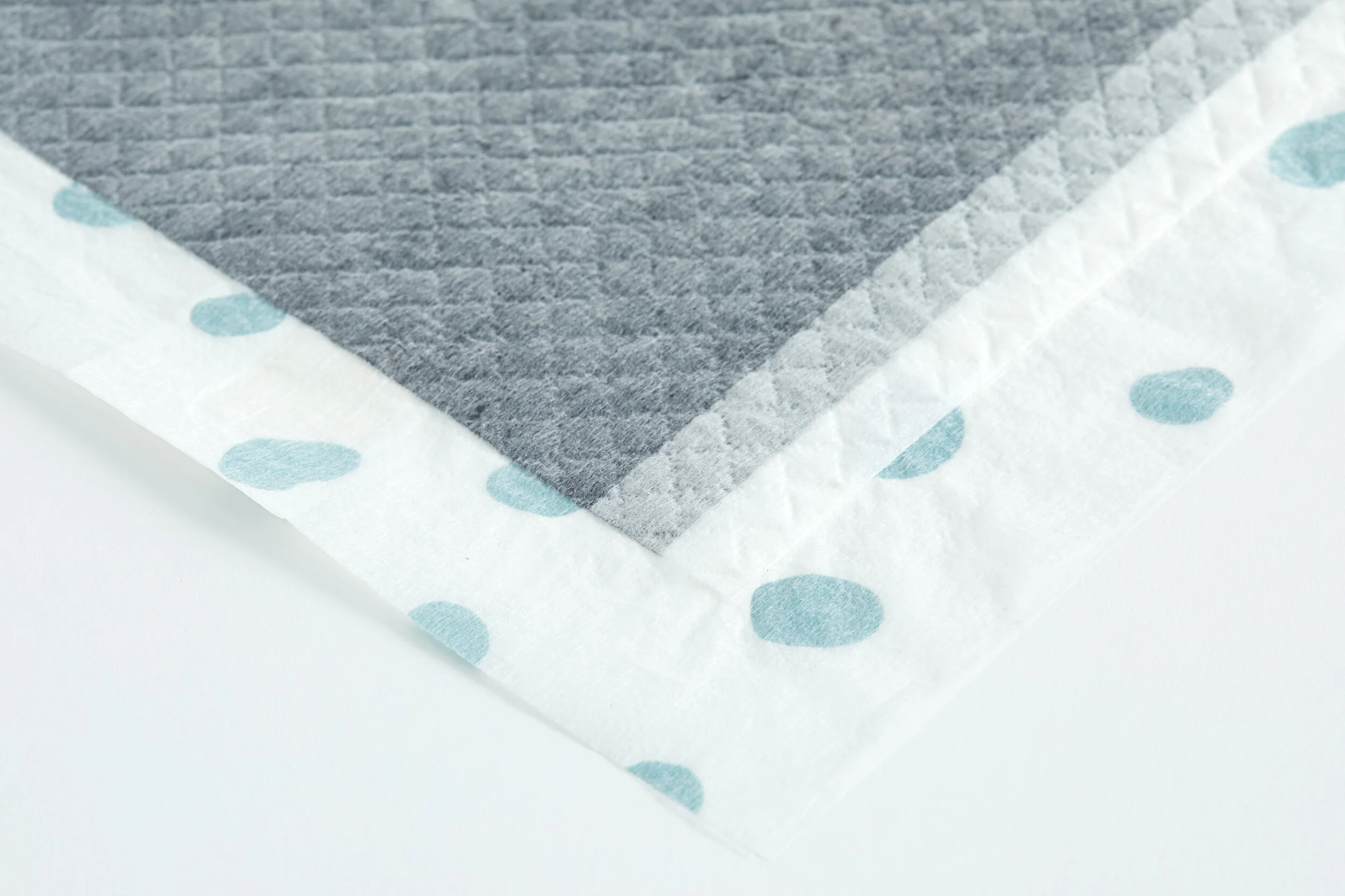 The Essential Training Pad is a redesign of classic pee pads. Most pee pads on the market are generic white pads with a hospital blue film backing and not attractive to have on your floor. So, we redesigned them to look and work better.